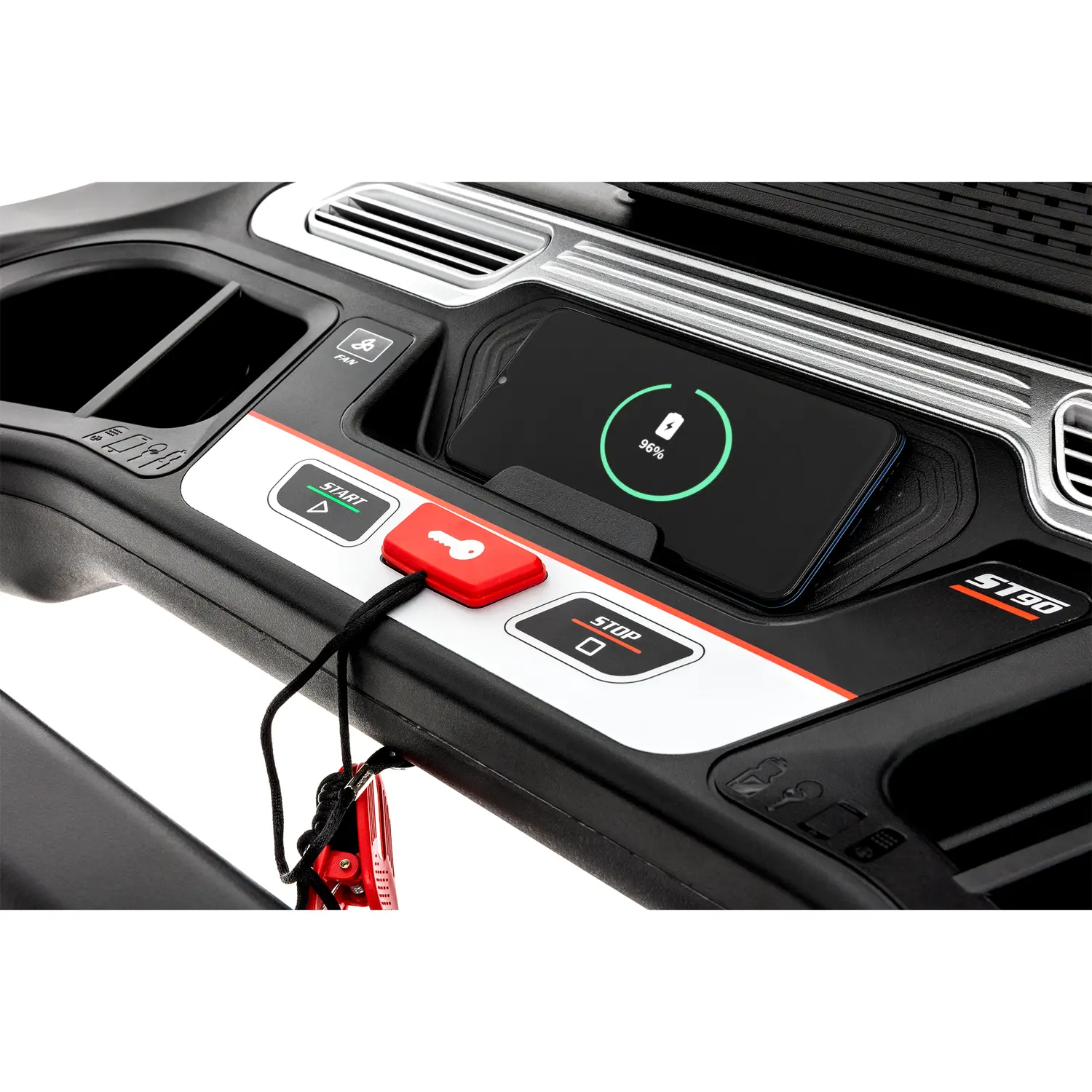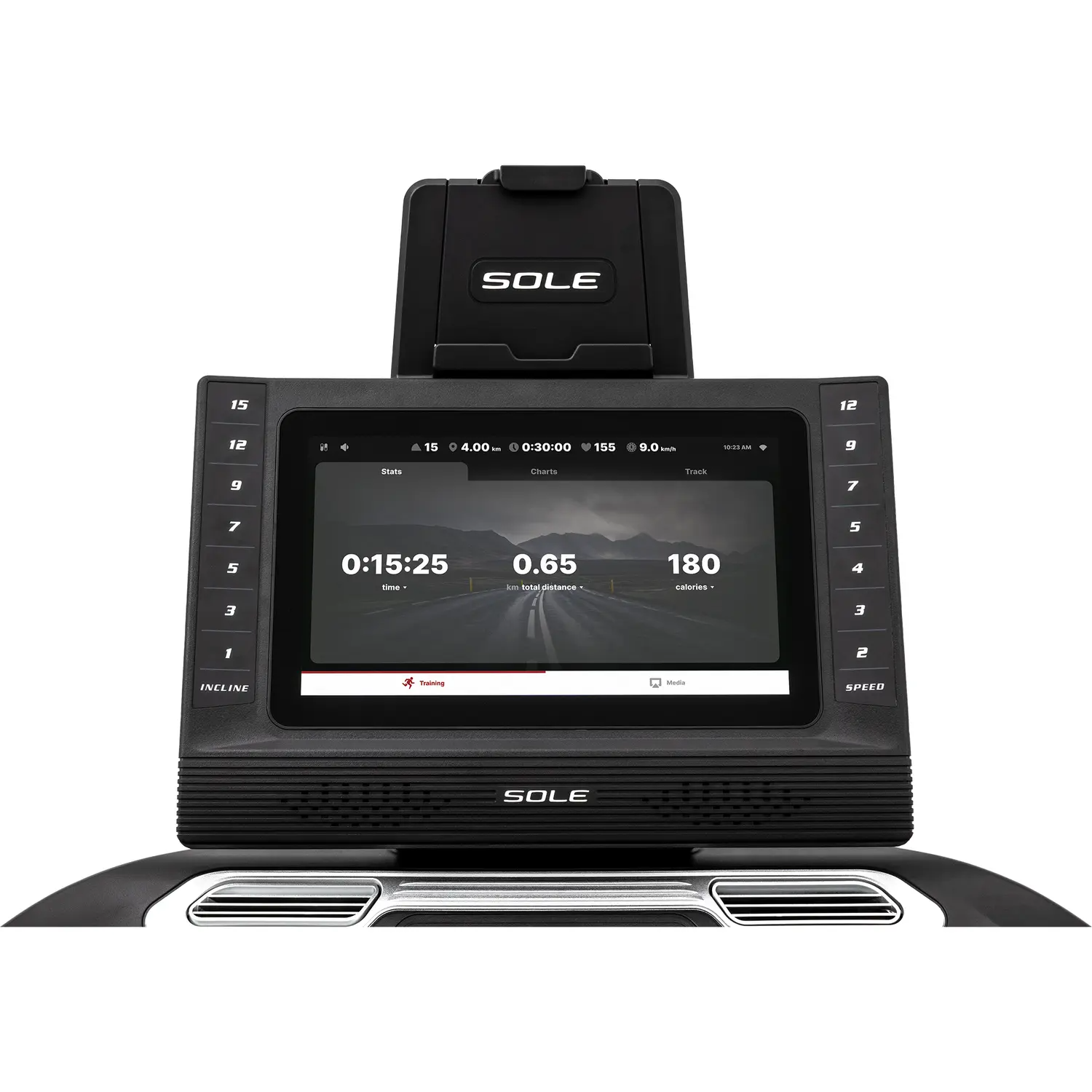 Enhanced with a 15.6" Touchscreen display, the Sole ST90 treadmill offers an interactive and engaging workout experience. The wireless charging feature ensures that your devices stay charged and ready to use, while the compatibility with the Sole+ app allows you to track your fitness workouts seamlessly.